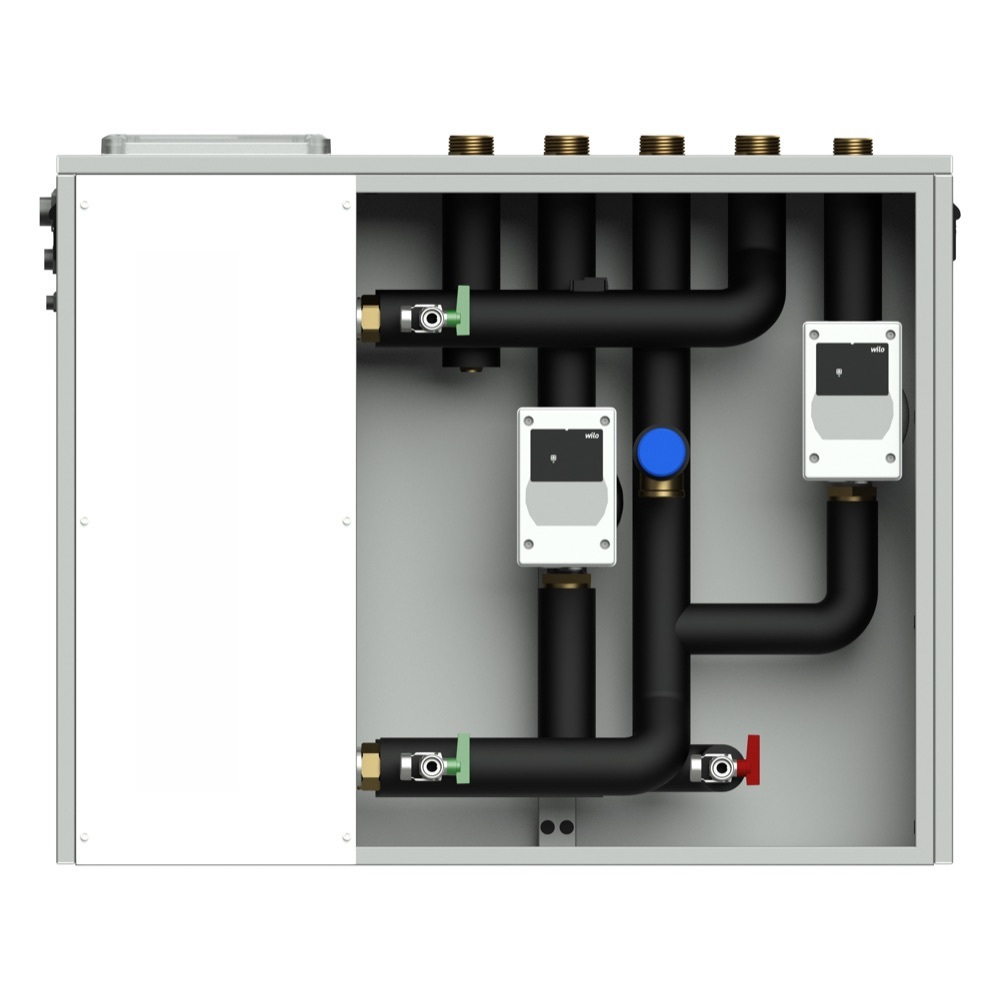 Це ключовий елемент, що розділяє контур теплоносія (наприклад, від теплового насосу) та контур холодної води, що надходить.