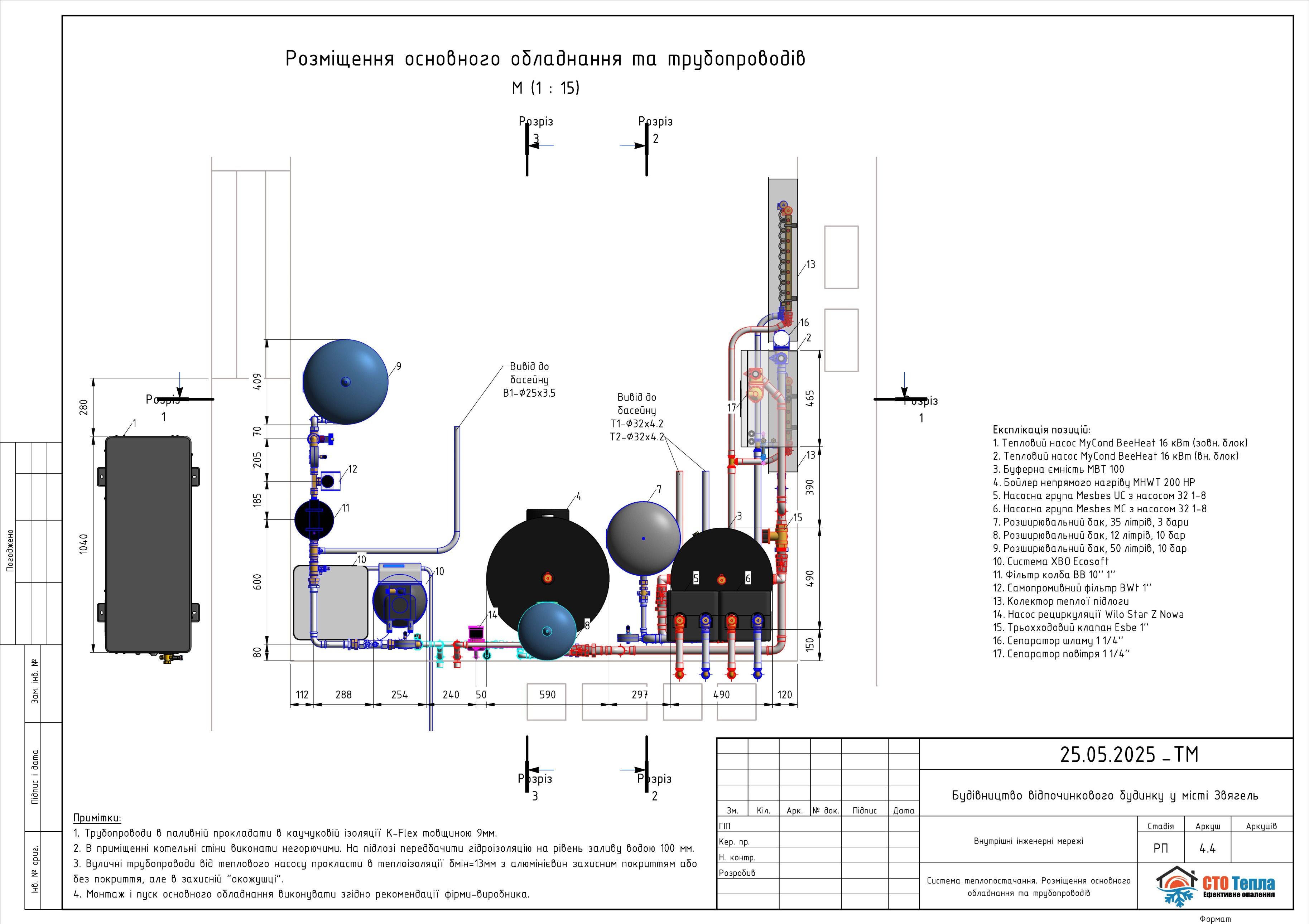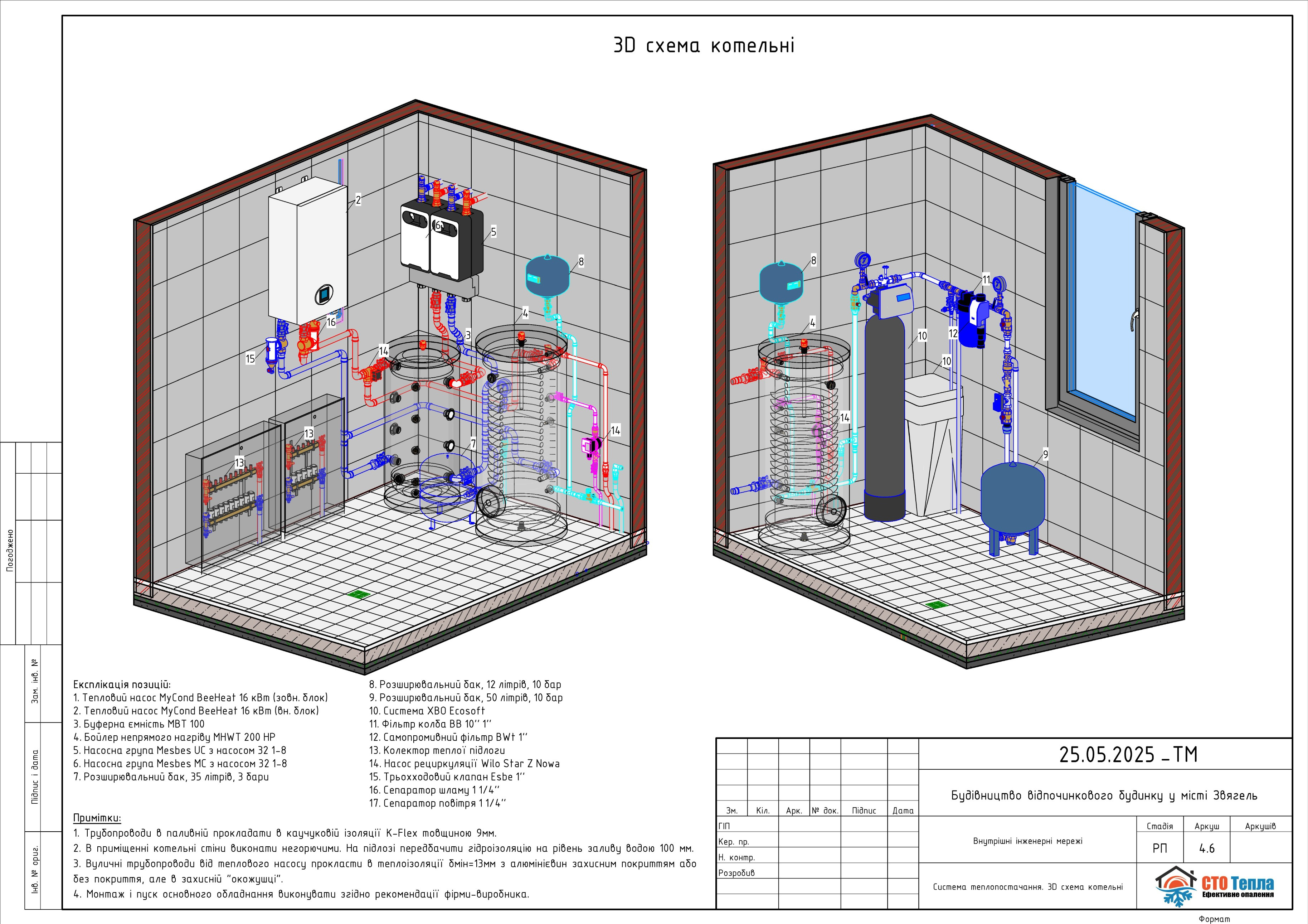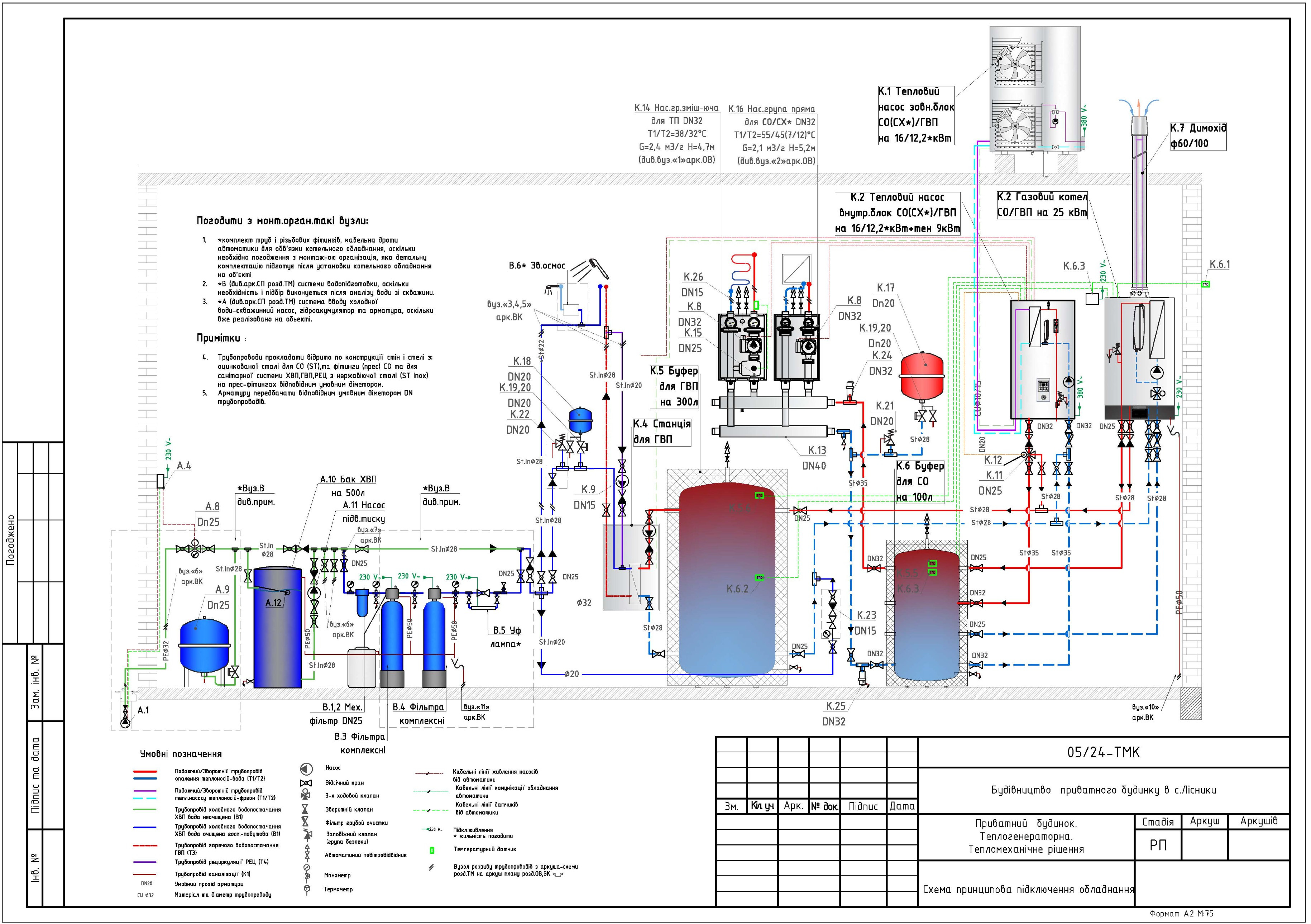 - Проєктування схеми підключення системи опалення/охолодження та ГВП.