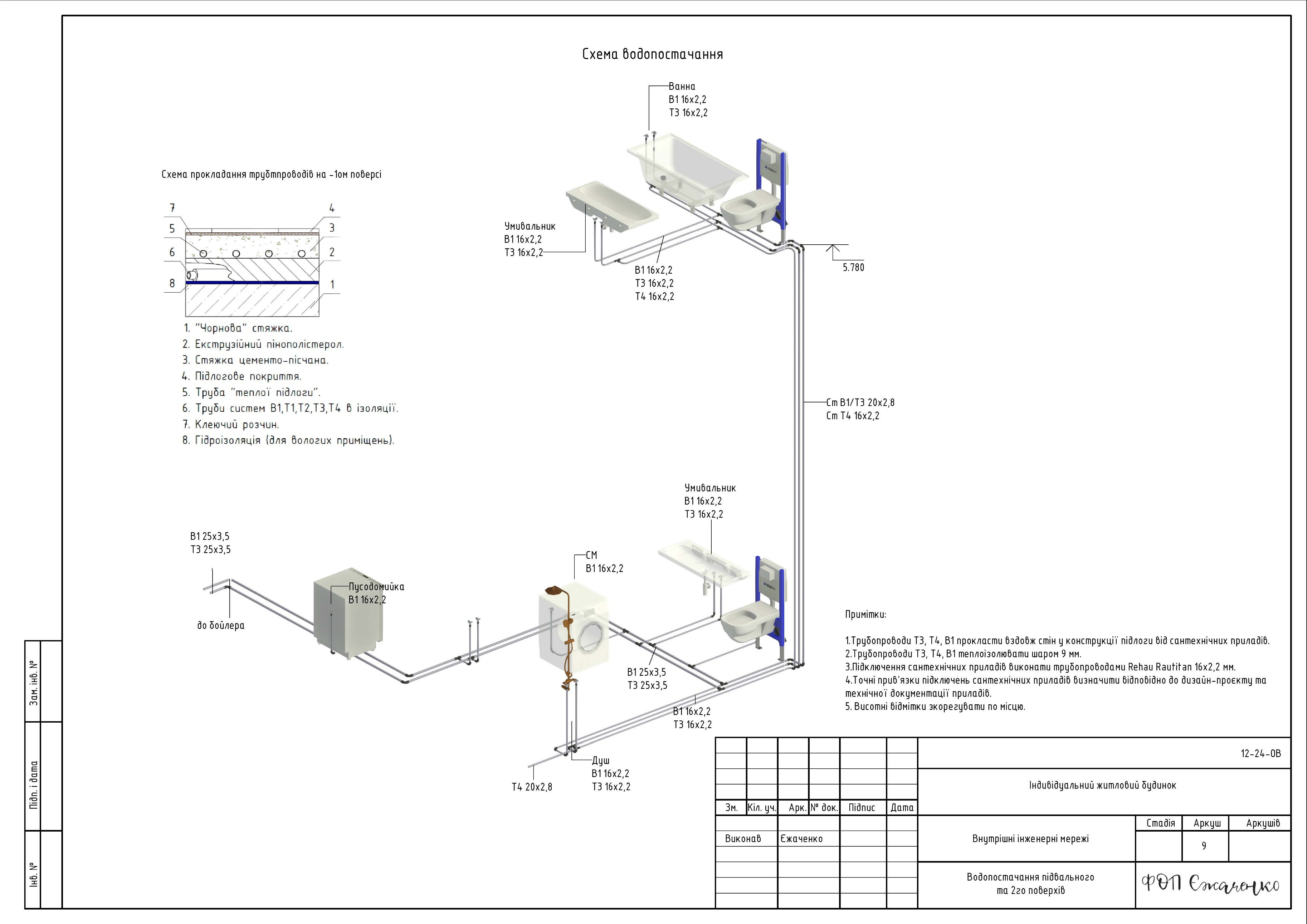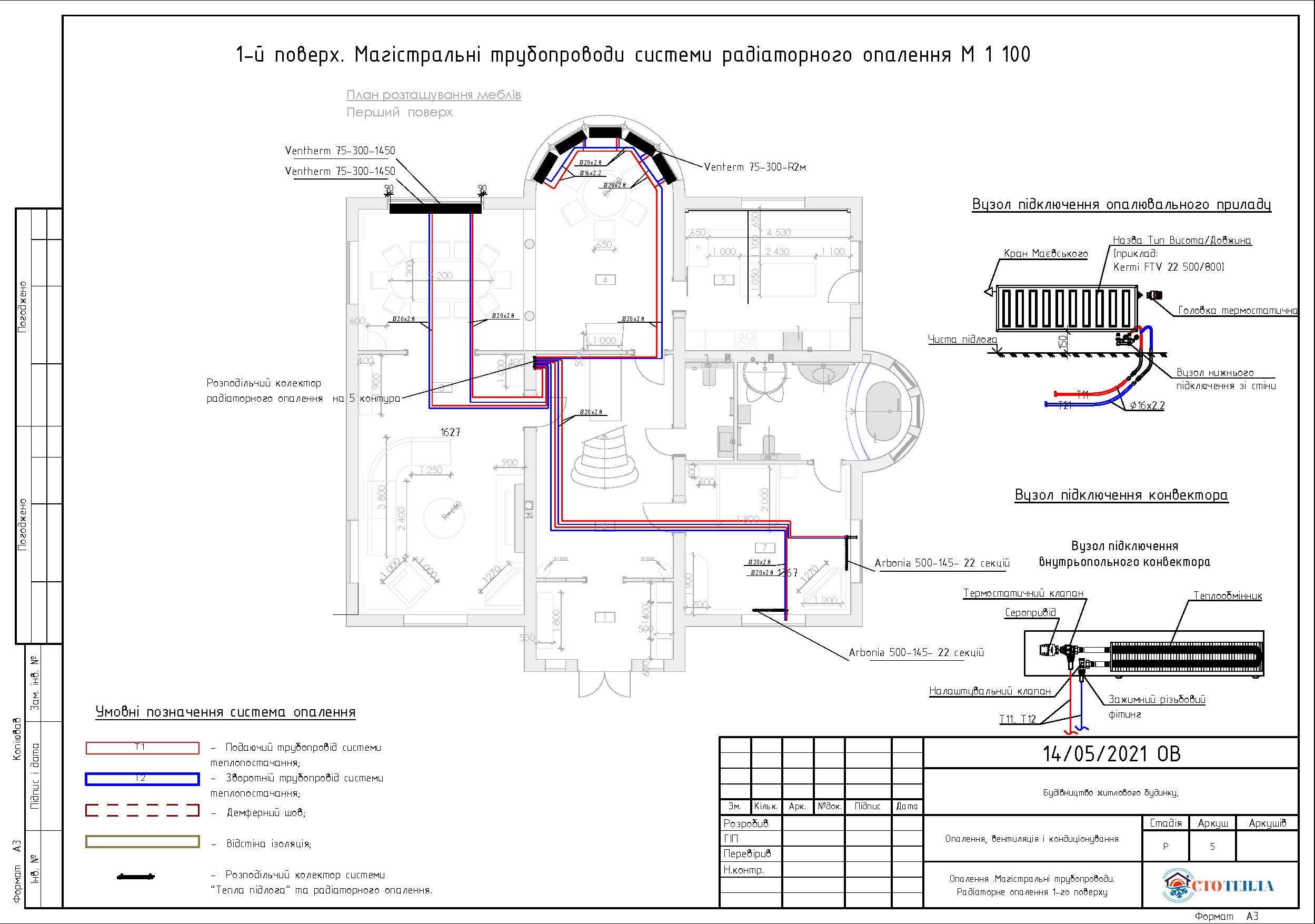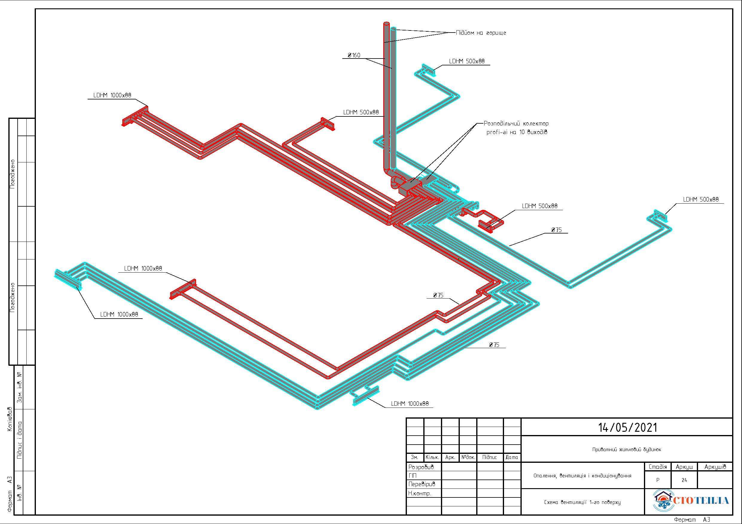 - Проєктування схеми підключення системи опалення/охолодження та ГВП.